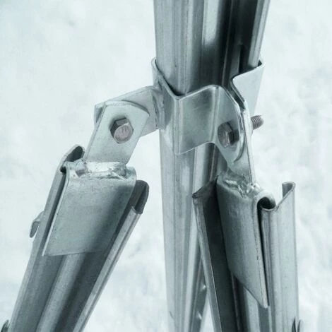 L’ensemble de renforcement peut être uniquement utilisé en combinaison avec des poteaux de clôture à profil en Z que vous pouvez également obtenir chez nous dans la quantité souhaitée et sous forme de poteaux de clôture de 2 m ou de 1,80 m.Fixation de l’ensemble de barres de renfort d’angle :