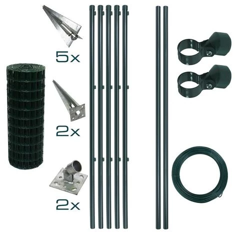 La clô ture de jardin de haute qualité est galvanisé e pour la proté ger contre la corrosion et recouverte d’ un revê tement en PVC vert. Les poteaux de clô ture sont é galement galvanisé s et revê tus de poudre.
