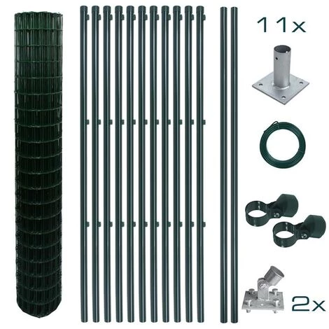 La clô ture de jardin de haute qualité est galvanisé e pour la proté ger contre la corrosion et recouverte d’ un revê tement en PVC vert. Les poteaux de clô ture sont é galement galvanisé s et revê tus de poudre.