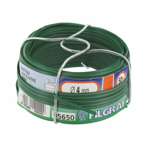 Ligne plastifiée couleur vert ø4mmx50m(diamètre/longueur) polyvalent. matière: métal plastifié filgraf