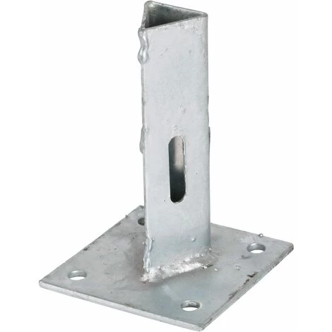 Support – Ancre sur platine à fixer pour piquet de clôture en fer Te 30Utilisation : En extérieur sur sol fixe (à visser ou à boulonner) – pour la réalisation de clôture en grillageMatériaux : Acier galvanisé à chaudHauteur du support – Pied : +/- 150 mm – épaisseur +/- 2 mmDimensions de la platine : +/- 100×100 mm – épaisseur +/- 4 mm équipé de 4 trous de fixation Ø 10 mmBridage du piquet dans le Support – par enfoncement Gamme : Jardin (ne convient pas aux structures porteuses. Les structures doivent être correctement conçues et mise en oeuvre avec jambe de force si nécessaire