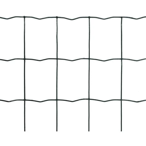 DescriptionCette clôture euro peut être employée comme clôture, décoration ou protection ordinaires pour la volaille, les chiots ou les équipements dans le jardin, l’industrie, la ferme, le transport, etc.C’est une clôture euro de haute qualité. Le revêtement en PVC noir verdâtre de 2,2 mm du fil d’acier de 1,8 mm non seulement rend la clôture plus belle, mais peut également l’empêcher de rouiller et d’émettre des rayons UV, assurant une utilisation à long terme.SpécificationsMatériau : Fil d’acier, enduit de PVCLongueur : 10 mHauteur : 1,5 mDimension de maillage : 76 x 63 mmDiamètre du fil : 1,8 / 2,2 mm (fil d’acier 1,8 mm, revêtement en PVC de 2,2 mm)